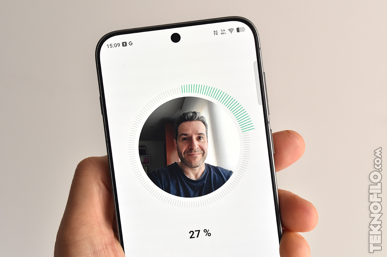 La parte de biometría también está muy bien resuelta. El lector de huella ultrasónico en pantalla es rápido, cómodo y fiable, incluso con el dedo algo húmedo, y el área de lectura es lo bastante amplia para no tener que estar apuntando al milímetro. El reconocimiento facial es veloz y práctico para el día a día.