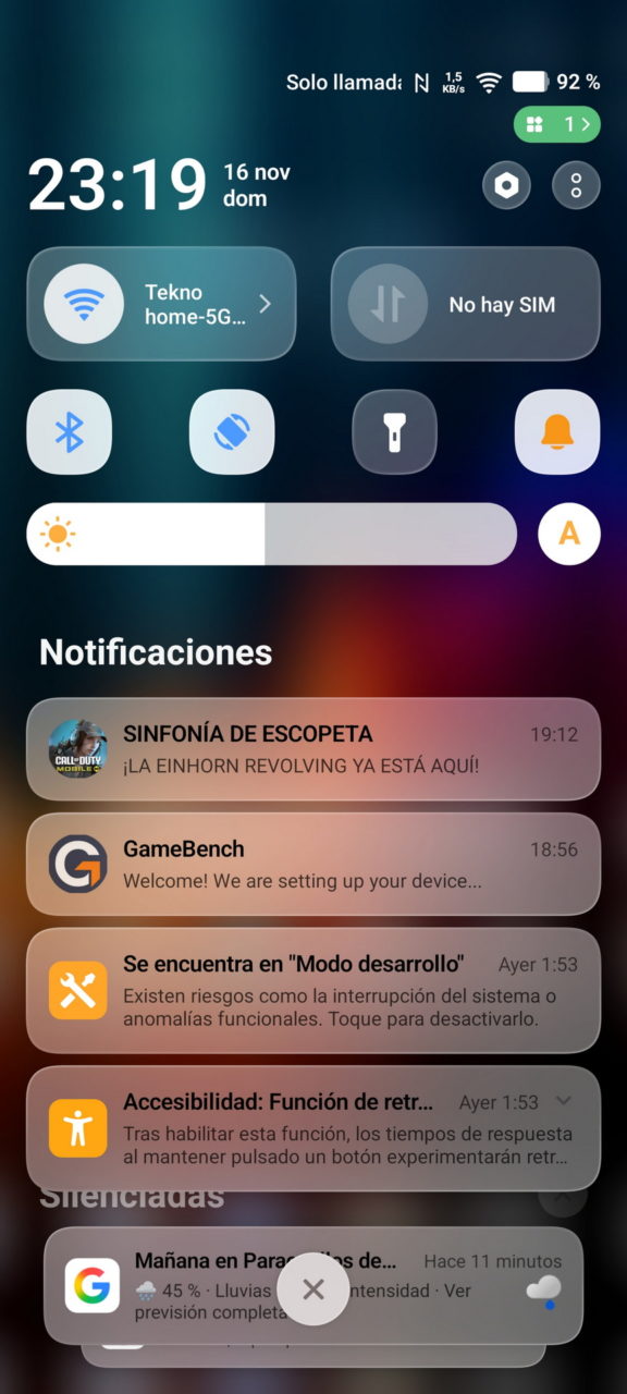 En rendimiento, el Dimensity 9500, acompañado de 16 GB de RAM y almacenamiento UFS 4.1, vuela. No he tenido ningún tipo de lag ni al moverme por la interfaz ni al abrir apps pesadas, y los juegos 3D más exigentes se mueven a 60 o 120 FPS con una estabilidad ejemplar. Es cierto que los tests de estrés muestran una caída de rendimiento cuando se le aprieta durante muchos minutos, pero en el uso real no he sufrido ralentizaciones importantes. Es un móvil pensado para aguantar el tipo en largas sesiones de uso sin despeinarse.