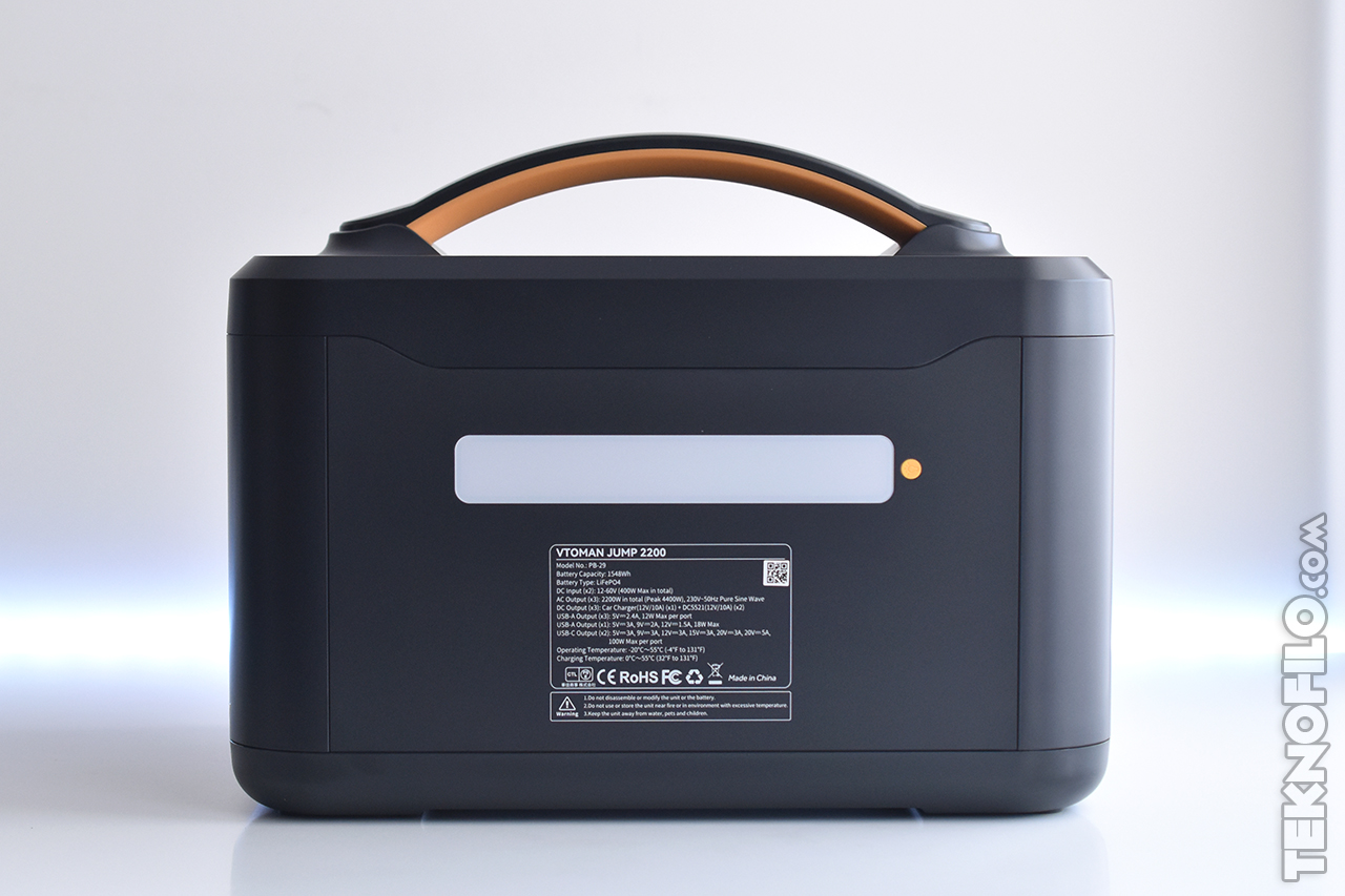 En la parte trasera, encontramos una práctica luz LED de 12W que ilumina la oscuridad de manera constante o, si preferimos, puede activar un modo SOS.