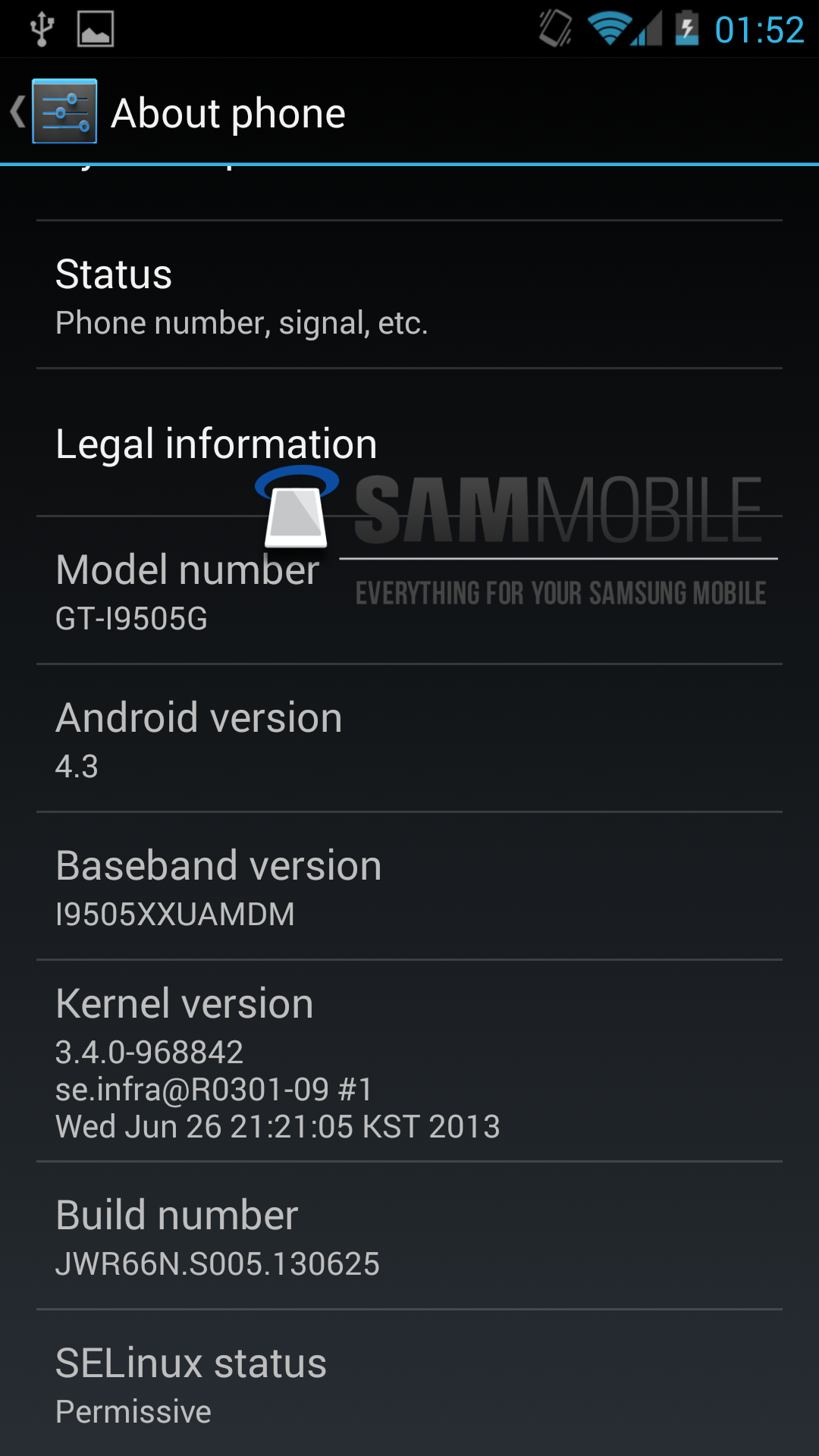 Las primeras capturas de pantalla de una versión temprana de Android 4.3 corriendo en el recientemente anunciado Samsung Galaxy S4 Google Play Edition (GT-I9505G) han visto la luz en el portal Sammobile.