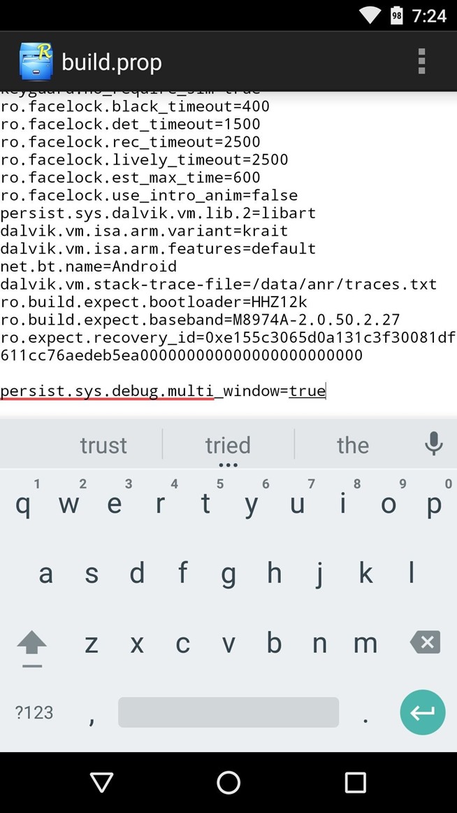 Después de añadir esa línea que activa el modo multi-ventana en Marshmallow, guarda los cambios en el fichero y reinicia el teléfono para que los cambios sean efectivos.