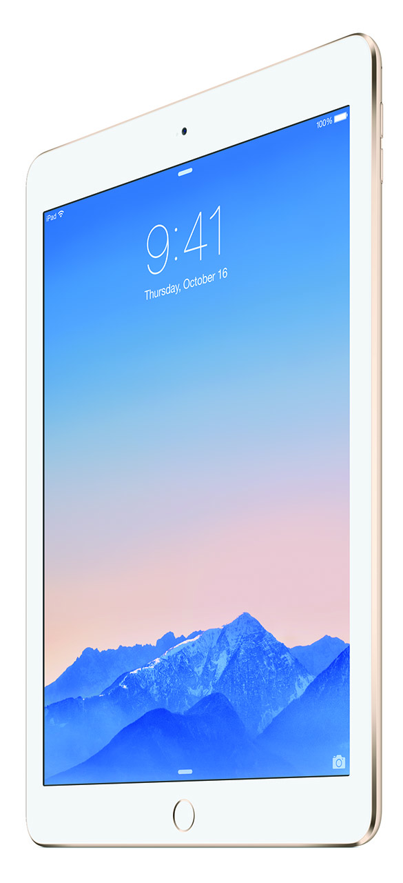 Apple ha anunciado también el iPad Air 2, que es más fino que un lápiz ya que cuenta con tan solo 6,1 mm de espesor. En comparación con el iPad Air, es un 18 por ciento más fino. Posee una pantalla laminada en la que el sensor táctil, el cristal y la pantalla LCD están totalmente pegados sin ninguna capa intermedia de aire. Además incorpora un recubrimiento anti-reflectante que reduce los reflejos en un 56 por ciento.