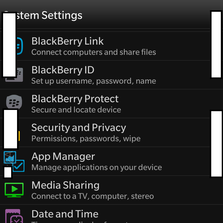 Las capturas de pantalla también muestras otras nuevas funcionalidades, como el soporte de Wi-Fi Direct que permite establecer una conexión Wi-Fi entre dos dispositivos sin necesidad de un punto de acceso o router. También hay una nueva opción en los ajustes llamada App Manager que ofrece un control más granular de ciertas funcionaliades del teléfono, y una opción para añadir tus calendarios a BlackBerry Hub. Los usuarios siguen enviando sus pantallazos con pequeños cambios al foro de CrackBerry, por lo que te animamos a que lo visites si quieres ver más.