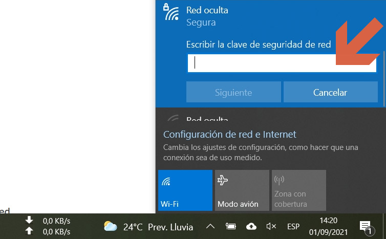 Conectarse a una red Wi-Fi oculta desde la barra de tareas de Windows 10