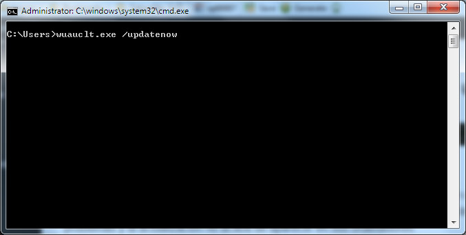 Dirígite a Windows Update, dale al botón de «Comprobar nuevas actualizaciones», y una vez que comience a buscar actualizaciones, vuelve a la línea de comandos y pulsa «Intro» rápidamente.