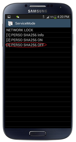 Paso 6: Aparecerán 3 opciones. Elige la que dice [3] PERSO SHA256 OFF.