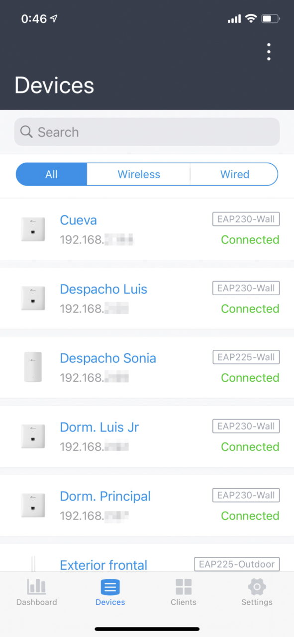 El software Omada Controller me permite gestionar todos los puntos de acceso WiFi instalados en casa y me da visibilidad sobre todos los dispositivos cliente conectados a la red.