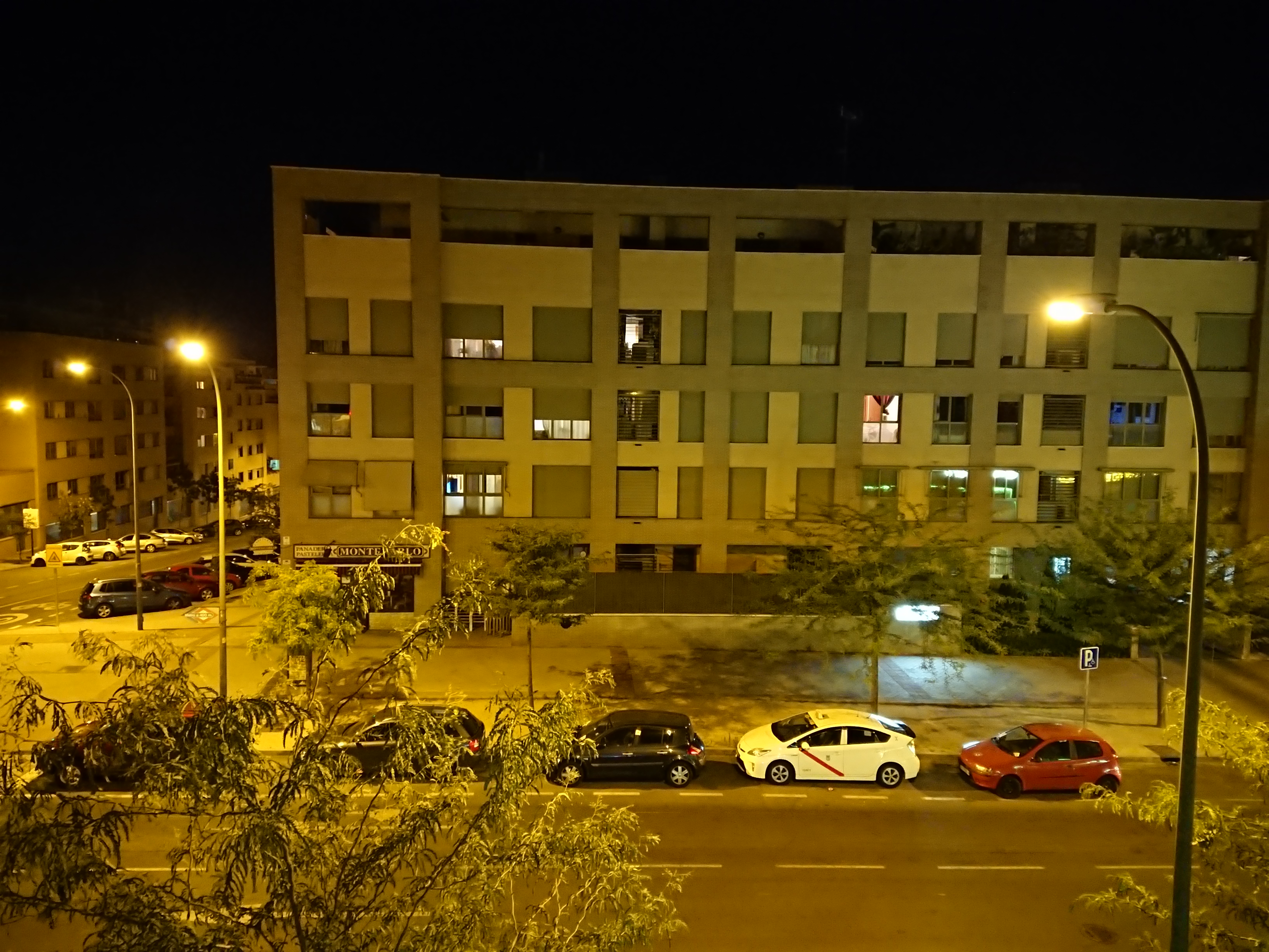 La escena fotografiada solamente está iluminada por las farolas de la calle, y la luz de estas farolas es captada de forma bastante diferente por cada teléfono.