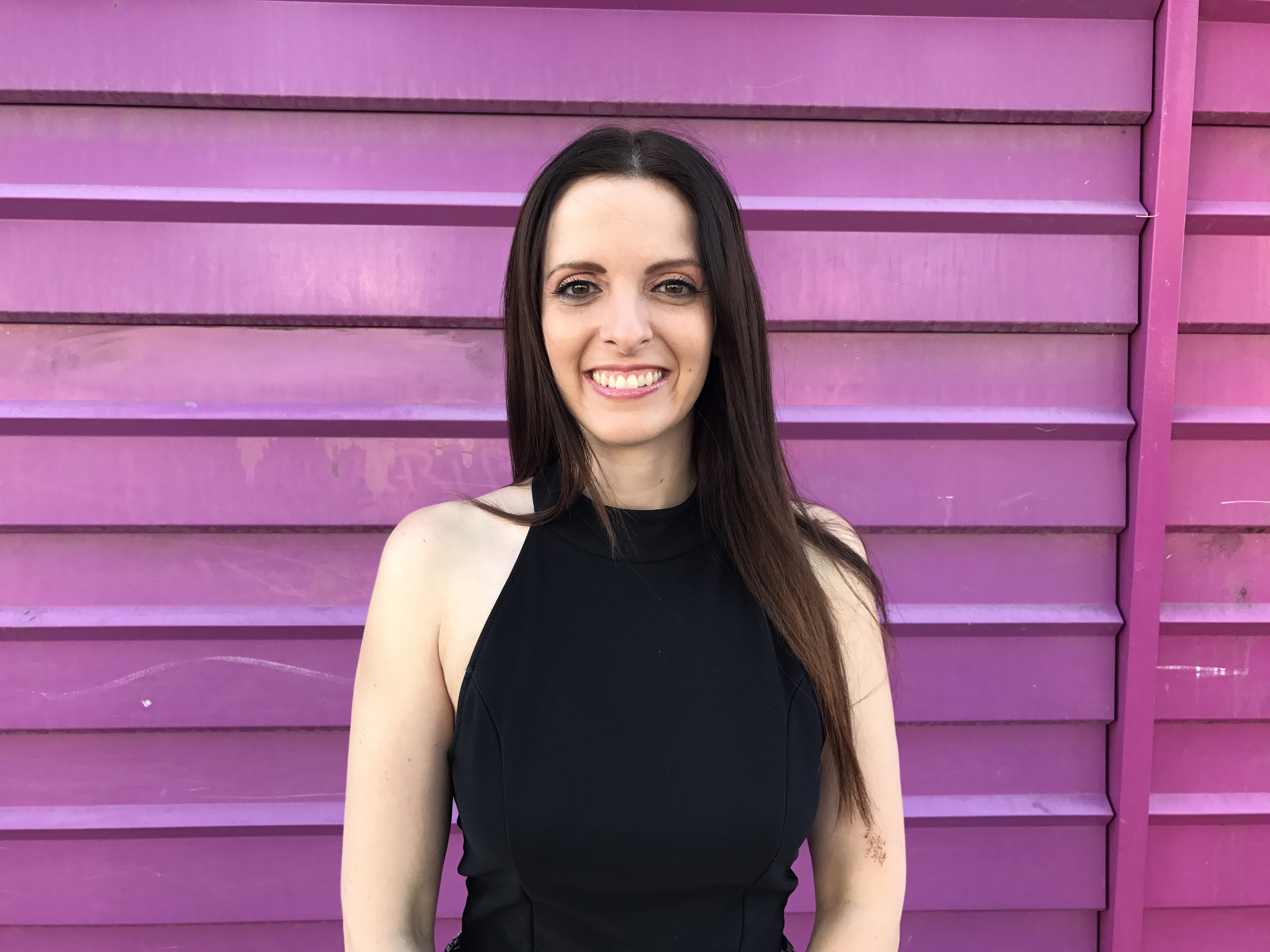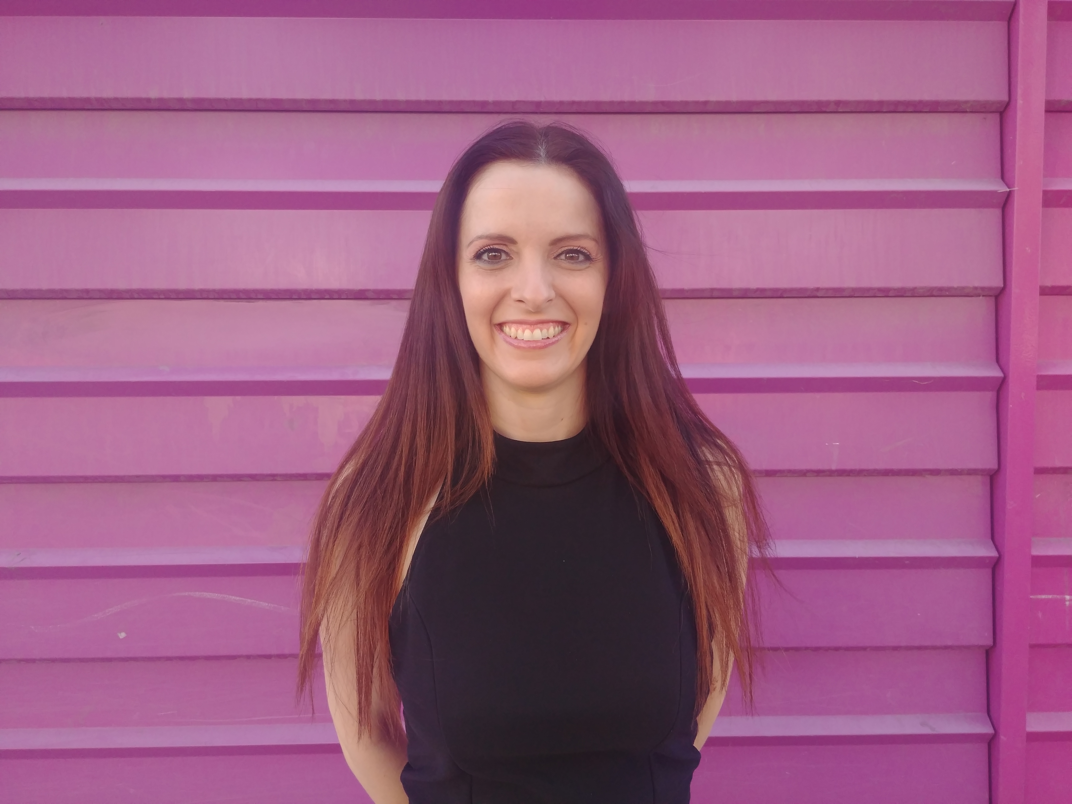 Esta otra escena ha tenido lugar en la calle, delante de una pared con un intenso color morado, Antes de tomar cada fotografía, hemos pulsado sobre los ojos para fijar el enfoque sobre esa zona.