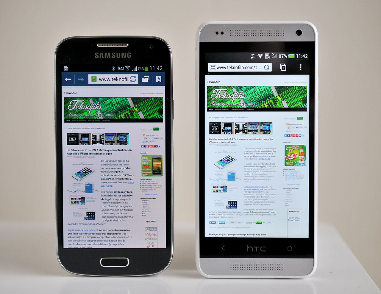 En la práctica esto significa que los textos e imágenes pequeñas del HTC One Mini se ven más nítidos que en el Galaxy S4 Mini. Esto es especialmente acusado a la hora de navegar por la web, ya que algunos textos pequeños que resultan ilegibles en el Galaxy S4 Mini se pueden leer sin demasiada dificultad en el HTC One Mini.