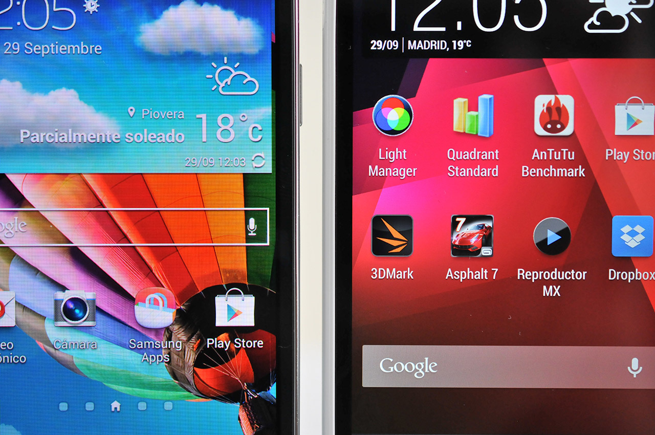 Además de notarlo a simple vista, las medidas que hemos visto en otros análisis indican un brillo máximo de 282 cd/m2 para el Galaxy S4 Mini frente a un brillo máximo de 462 cd/m2 para el HTC One Mini. Esto implica que, a plena luz del sol, resulta más sencillo ver la pantalla del HTC One Mini.