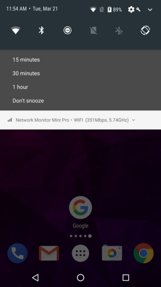 Cuando el tiempo se acaba, la notificación vuelve a aparecer. Si 15 minutos no es suficiente, puedes pulsar sobre el tiempo nada más dormir la notificación y abrir una selección de tiempos: 30 minutos, 1 hora o no dormir. | Fuente: Android Police