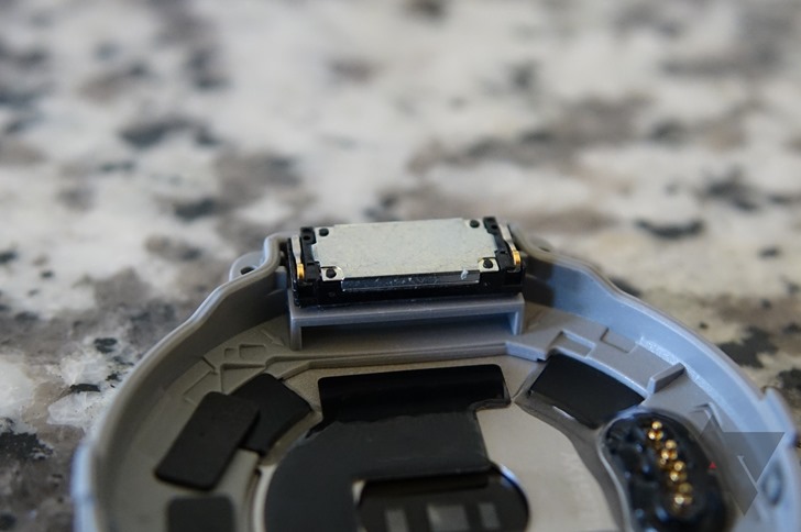 En el interior del Huawei Watch han dado con un componente de metal altamente magnético y pegado a un zona del reloj con una extraña apertura en la carcasa. Aunque se podría pensar que esa apertura es para el micrófono, realmente las aperturas para los dos micrófonos con los que cuenta el reloj están en el lado opuesto.