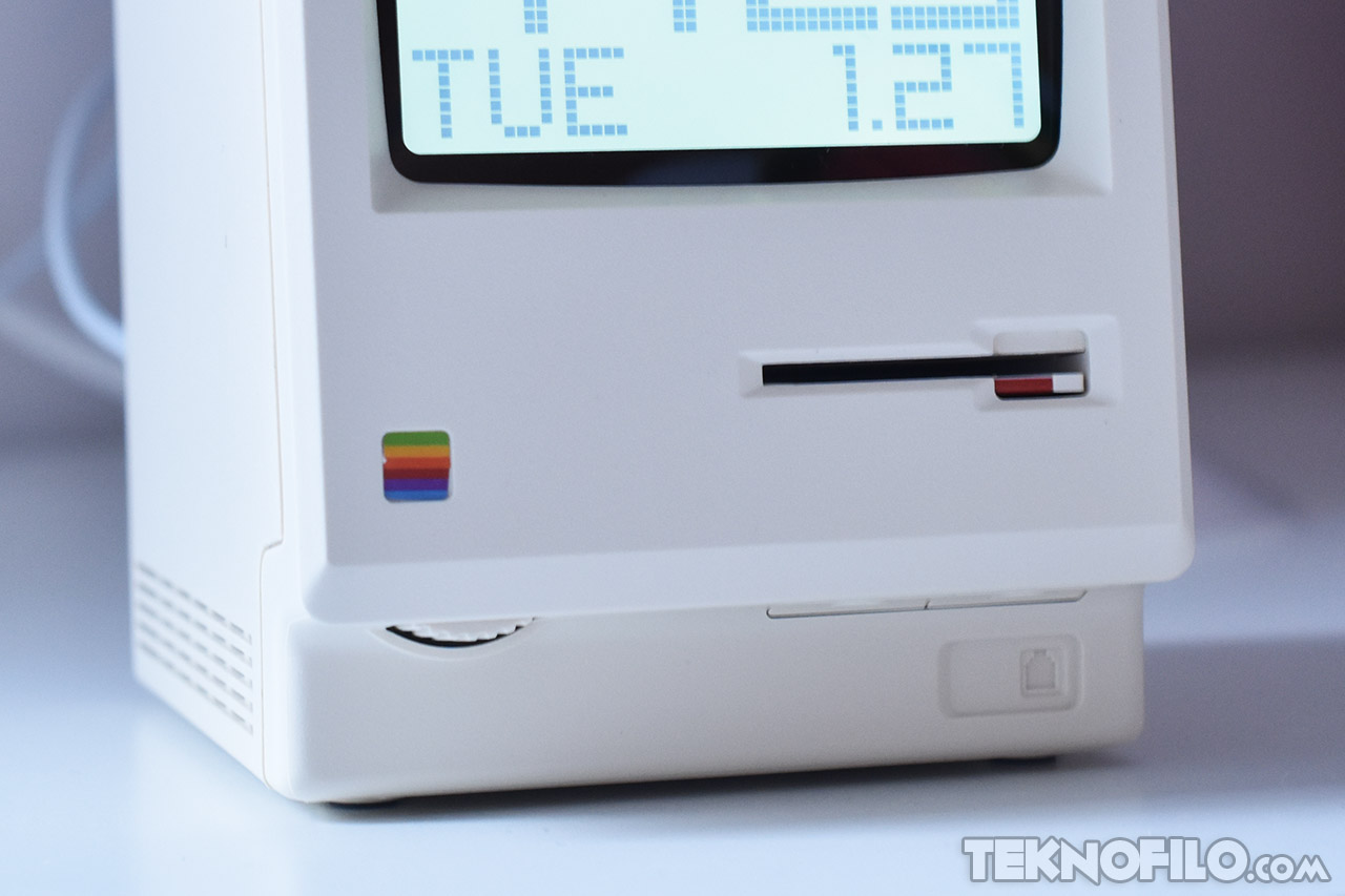 Su elemento más llamativo es la presencia de una disquetera frontal totalmente funcional… al menos a nivel visual. Al introducir el disquete incluido, el dispositivo simula una secuencia de arranque, recreando la experiencia de encender un ordenador antiguo. Un detalle puramente estético, pero cuidadosamente pensado para reforzar esa sensación de viaje al pasado.