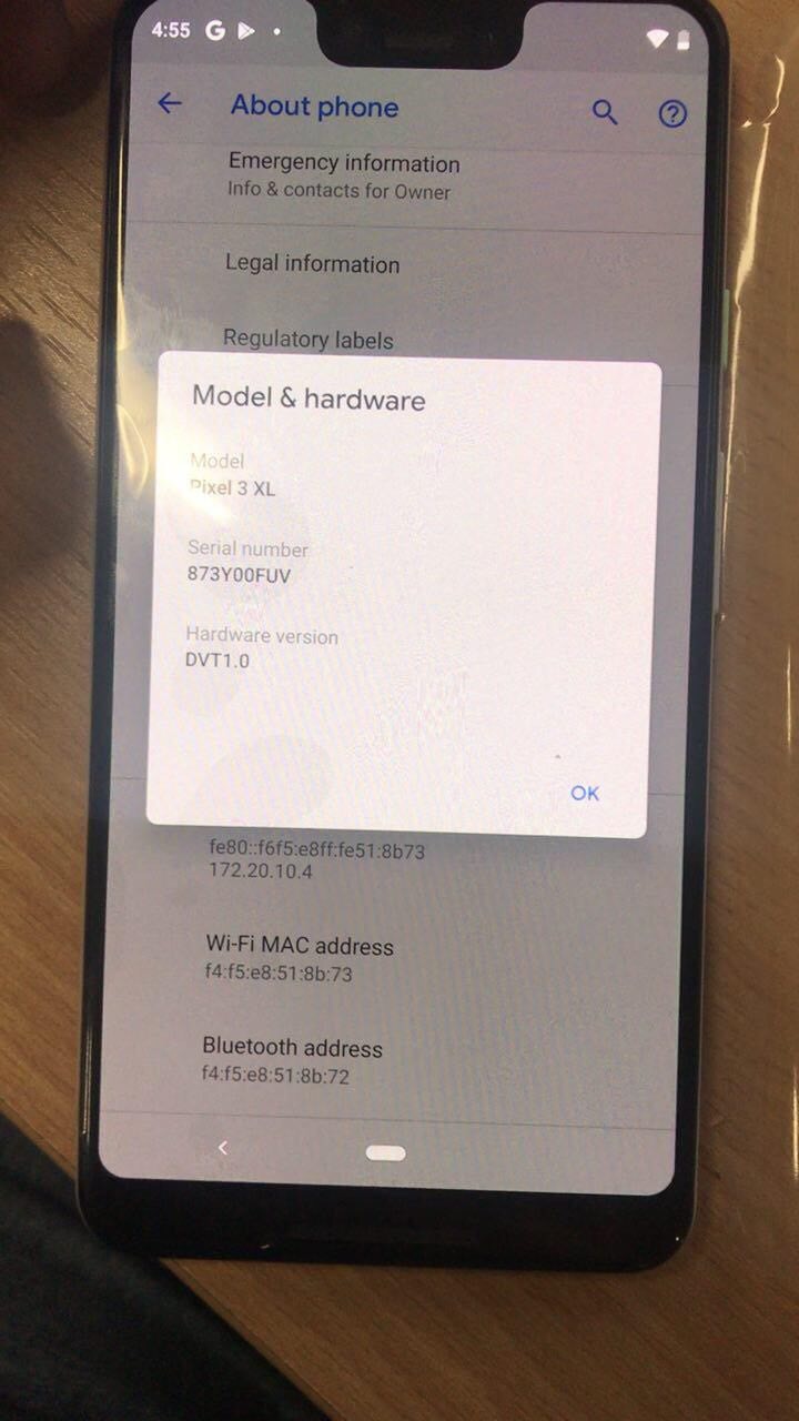 Las fotos también muestran el teléfono corriendo Android 9.0 Pie con la función de navegación por gestos activada. Esto no nos sorprende ya que Google ha confirmado que los gestos serán la única forma de manejar el próximo Pixel — no habrá soporte para los tres botones tradicionales.