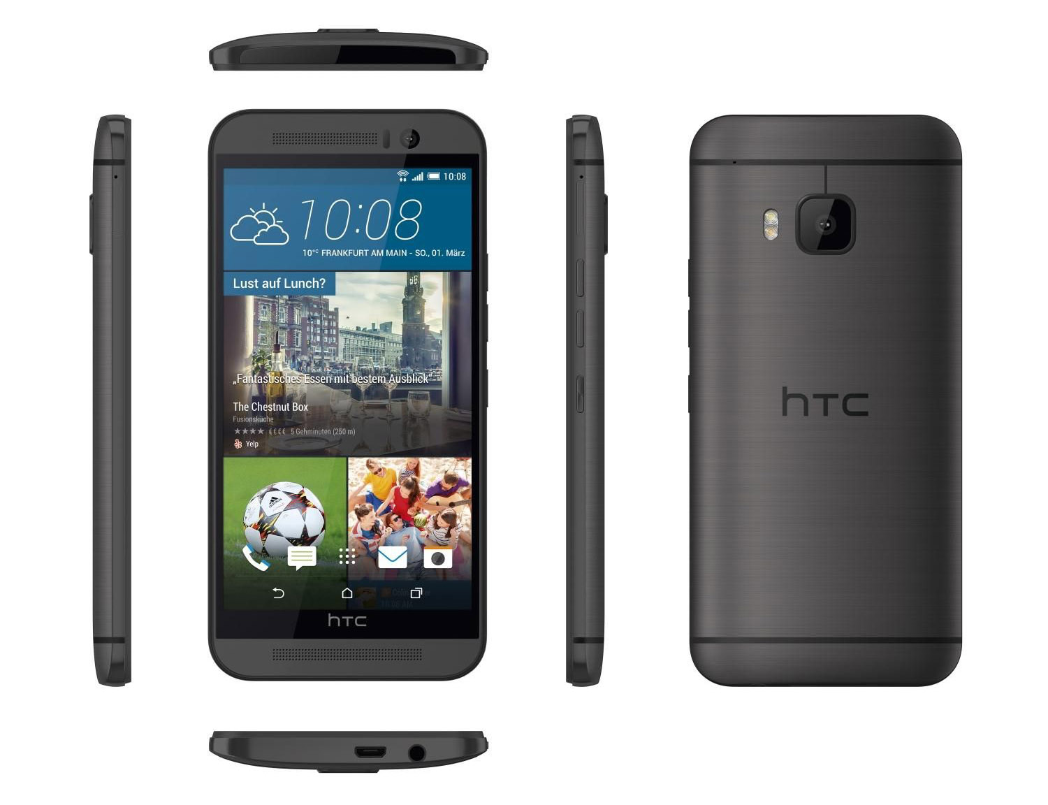 El diseño del HTC One M9 no parece haber cambiado mucho respecto al HTC One M8, sino que más bien parece una versión revisada de su predecesor. Los altavoces frontales, la cámara, y la barra negra debajo de la pantalla están en los mismos sitios. En todo caso, la barra negra parece ser algo más estrecha aunque sigue pareciendo innecesaria.