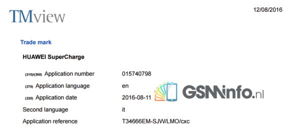 Huawei ha solicitado el registro de la marca «SuperCharge» en la Unión Europea, lo cual sugiere que la compañía utilizará una nueva tecnología de carga rápida para las baterías de sus próximos teléfonos.