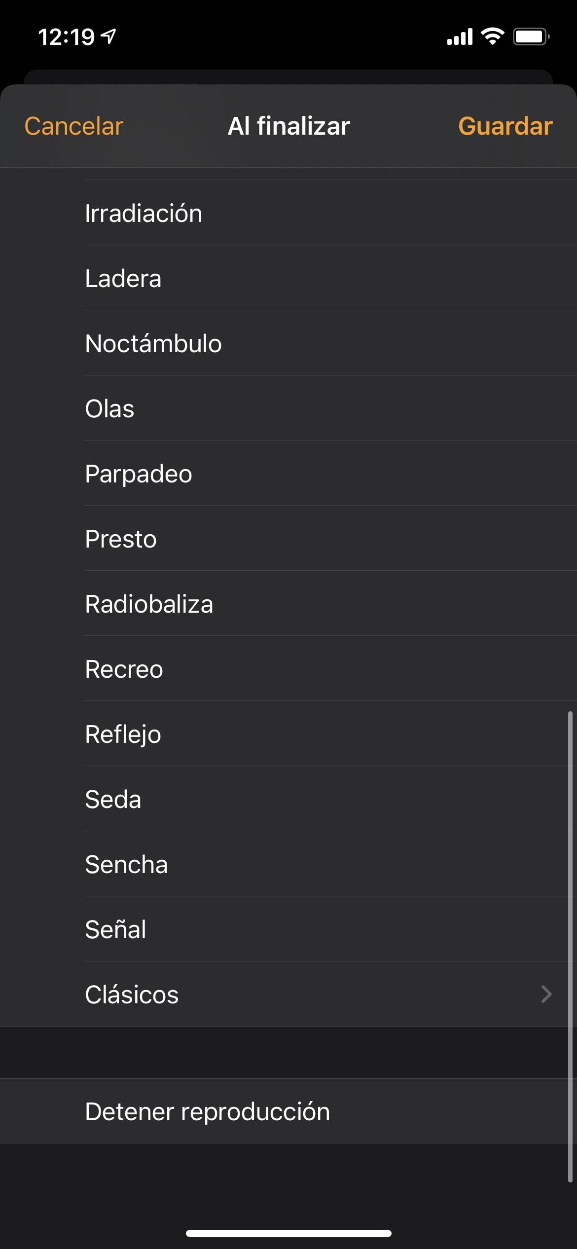 4. Toque el botón «Al finalizar». Desplázate hasta la parte inferior de la pantalla y pulse sobre «Detener la reproducción».