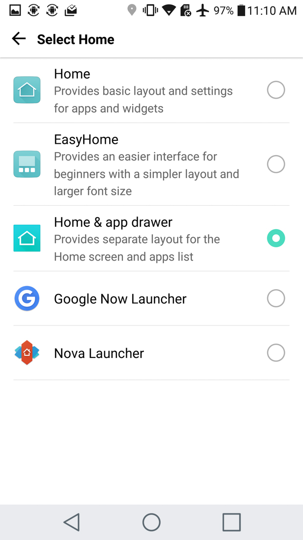 Aunque los nostálgicos del cajón de aplicaciones podían descargar la aplicación LG Home de la tienda de aplicaciones SmartWorld de LG, el problema era que el cajón de aplicaciones Smart Home ha sido diseñado usando el lenguaje de diseño UX 4.0 del LG G4, y no el más moderno UX 5.0 del LG G5.