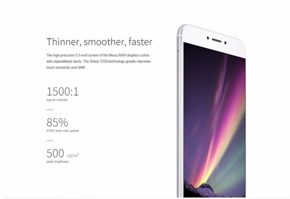 El Meizu MX6 cuenta con pantalla 5.5″ de resolución Full HD, un procesador Helio X20 de diez núcleos a 2.3GHz, 4GB de RAM, 32GB de almacenamiento interno ampliable mediante micro-SD, cámaras de 12MP y 5MP, lector de huella dactilar, Dual SIM, conector USB-C y batería de 3.060 mAh con carga rápida. Además llega con Android 6.0 Marshmallow y la capa Flyme 5.5.