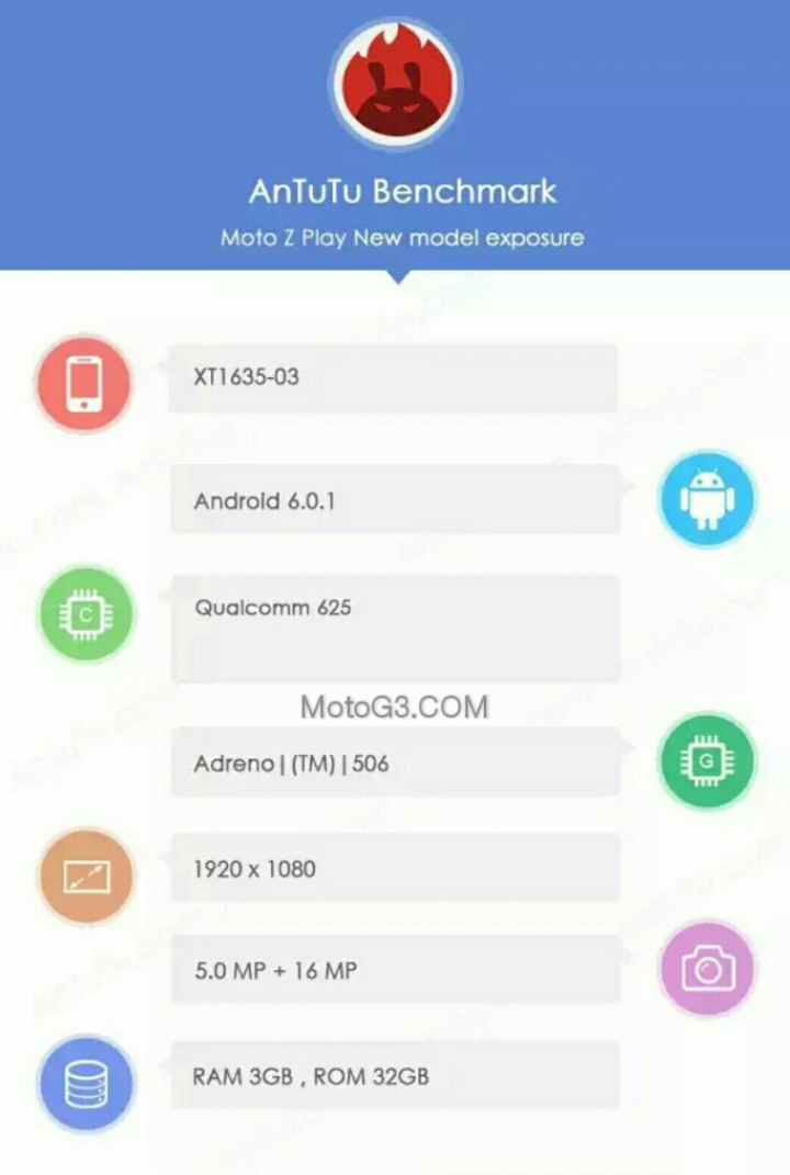 Tras aparecer ayer en Zauba, la web de importación de India, el Moto Z Play se ha dejado ver hoy en la página de Weibo de AnTuTu revelando sus especificaciones.