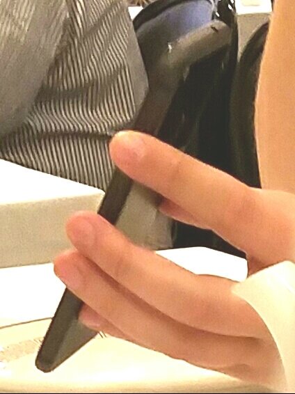 En la parte inferior de la pantalla se adivina una barra de botones virtuales y, justo debajo, el marco inferior con una inscripción que está difuminada. No parece haber ningún altavoz en la parte de abajo.