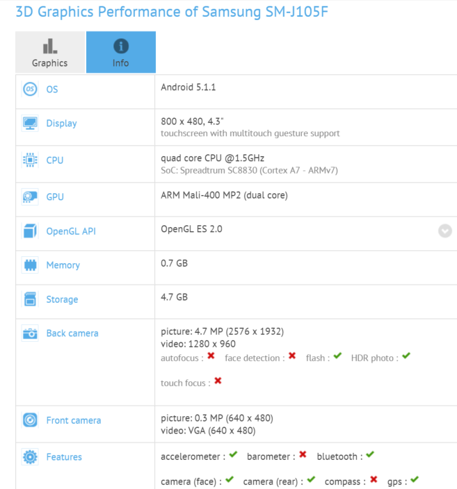 Por último, se ha descubierto cierto código en la web de Spreadtrum que asocia el número de modelo SM-J105F con el nombre «Galaxy J1 mini».