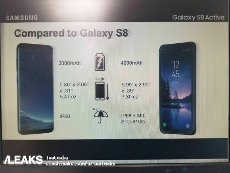 Hoy han aparecido unas imágenes que parecen proceder de una presentación oficial de Samsung, y que confirman que el Galaxy S8 Active mantendrá las especificaciones del modelo original pero con algunas mejoras.