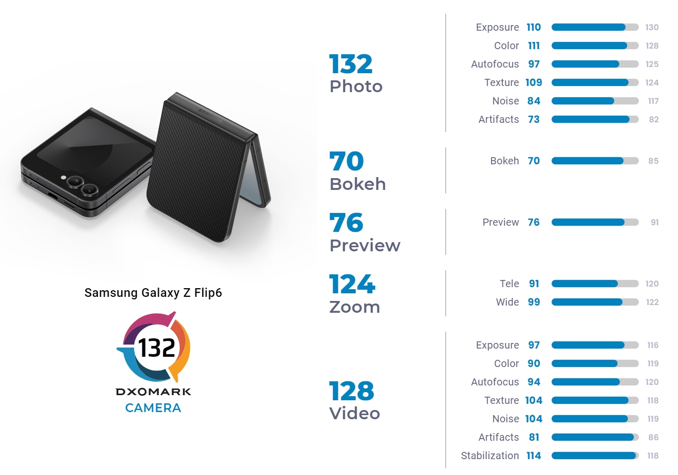 El Samsung Galaxy Z Flip6 se sitúa en 3ª posición en el ranking de cámara de dispositivos plegables de DXOMark