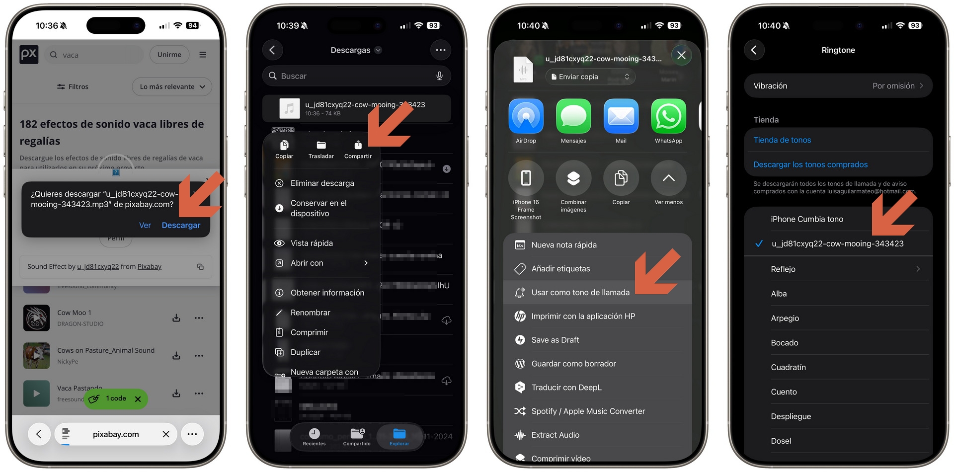 El proceso es muy similar: abre la grabación, accede al menú de opciones, pulsa compartir y selecciona la opción para usarlo como tono.