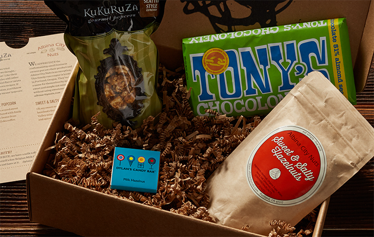 Cuando se pulsa, Amazon te envía una caja con un surtido de chocolatinas hechas por «artesanos de todo el país» — entendiendo por país, Estados Unidos, ya que por el momento solo está disponible en dicho país.