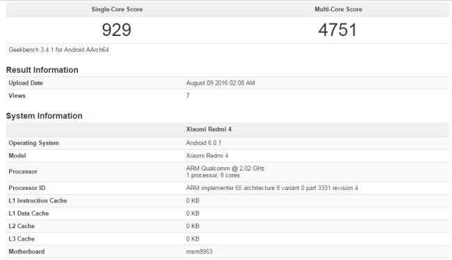 El Xiaomi Redmi 4 ha aparecido recientemente en la base de datos de GeekBench contradiciendo ciertos rumores precios que apuntaban a que llegar铆a con chip Helio X20. El Redmi 4 que se ha dejado ver en GeekBench cuenta con un procesador Snapdragon 625.