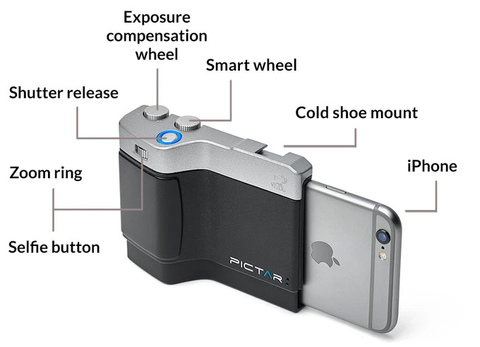 Pictar es un nuevo accesorio para el iPhone que costará unos 90 dólares y que te ofrecerá controles físicos para accionar la cámara y un mejor agarre. Se parece bastante al módulo de cámara LG Cam Plus del LG G5, solo que en lugar de insertarlo en el teléfono, el teléfono se inserta en él ya que se trata de una especie de funda.