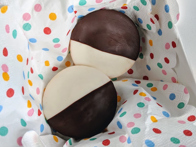 La fotografía muestra dos galletas bicolor y ha sido reducida a una resolución de 800 x 601 píxeles, por lo que no podemos decir mucho sobre la calidad de la imagen. El modelo de la cámara dice «No va a ser tan fácil ;)», indicando claramente que Google — que aparece como «Fabricante de la cámara» — esperaba que alguien la descubriese.