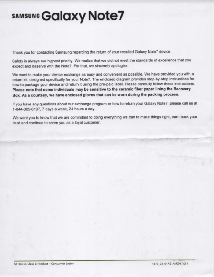 Segun Mario Serrafero de XDA Developers, Samsung esta enviando cajas aisladas térmicamente y guantes especiales para aquellos que tienen que devolver sus terminales.