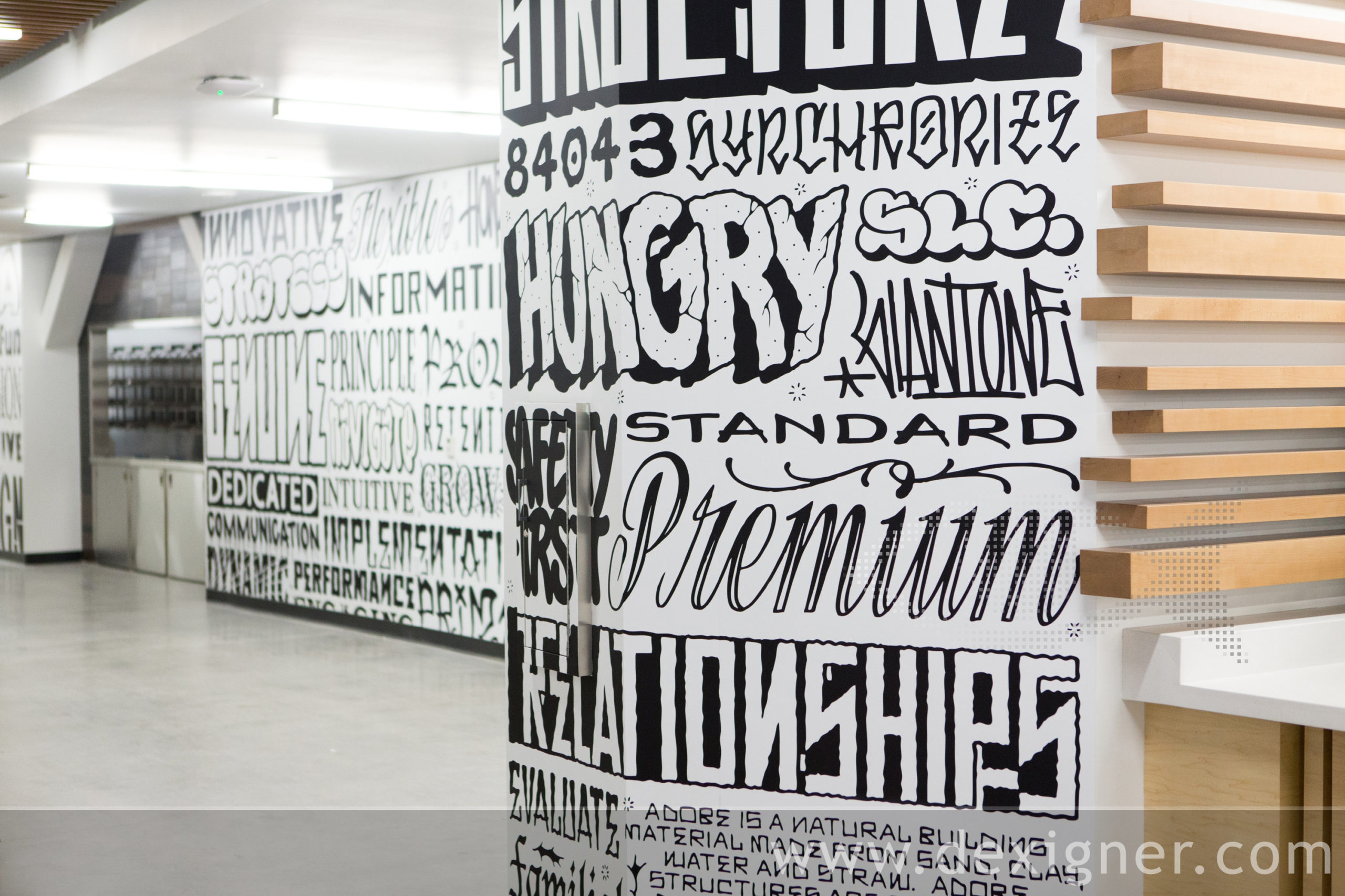 En 2010, Adobe asignó a Rapt Studio el diseño de los interiores del edificio y le retó a crear un lugar de trabajo que fuera una extensión y un reflejo de Adobe como marca innovadora y que capturase su espíritu de cultura en constante evolución.