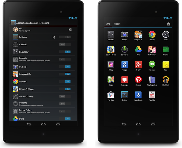 En Android 4.3 han añadido los perfiles restringidos, que permiten gestionar el acceso a aplicaciones y contenido de forma individual para cada usuario.