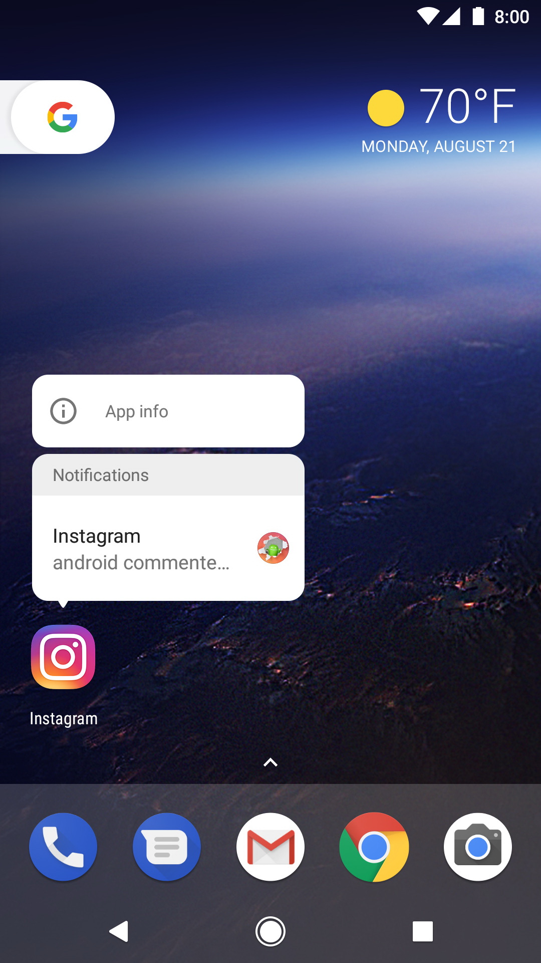 Android Oreo llega con nuevas funcionalidades como la imagen dentro de imagen (Picture-in-Picture), que permite ver un vídeo en una ventana superpuesta sobre el escritorio, y los puntos de aviso de las notificaciones, que permiten ver rápidamente las novedades en las aplicaciones.