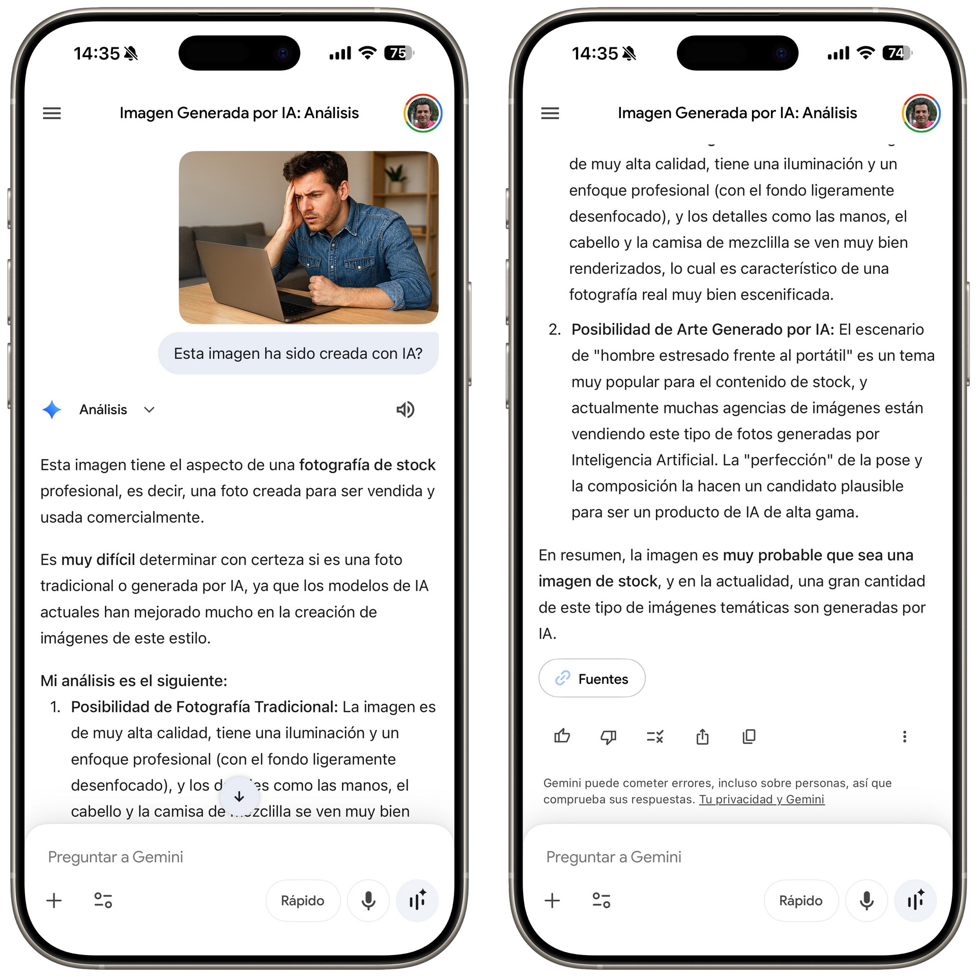 De hecho, al probar la función con una imagen generada por ChatGPT, el sistema respondió erróneamente que parecía una fotografía de stock, lo que demuestra que todavía hay margen de mejora en este tipo de verificaciones.