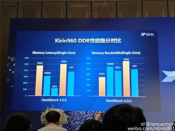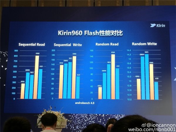 En la presentación, la compañía ha comparado el rendimiento del Kirin 960 con el del Qualcomm Snapdragon 821, el Apple A10 y otros.