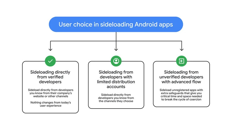 El rediseño del sideloading se apoya en lo que Google denomina un “flujo avanzado”, pensado especialmente para proteger a los usuarios frente a engaños o coerción. La clave del sistema es ofrecer varias vías para instalar aplicaciones, adaptadas al nivel de confianza de la fuente.