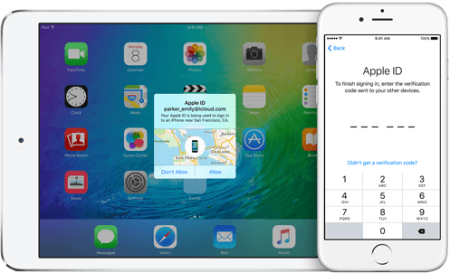 Con las prestaciones de seguridad mejoradas de iOS 9, los dispositivos y las cuentas de ID de Apple estarán más seguros, ya que refuerzan el código y mejoran la autenticación de doble factor integrándola directamente en iOS.