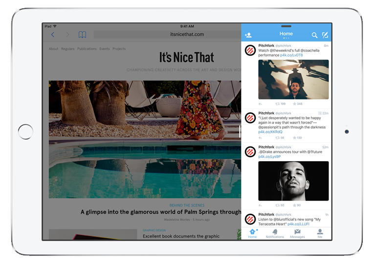 Habrá una funcionalidad llamada Slide Over que permitirá abrir una segunda aplicación sin abandonar por completo la que estás usando en ese momento. También llegará la funcionalidad Split View que permitirá que dos aplicaciones se ejecuten en la misma pantalla, lo cual es útil cuando, por ejemplo, estás viendo datos y quieres tomar notas a la vez.