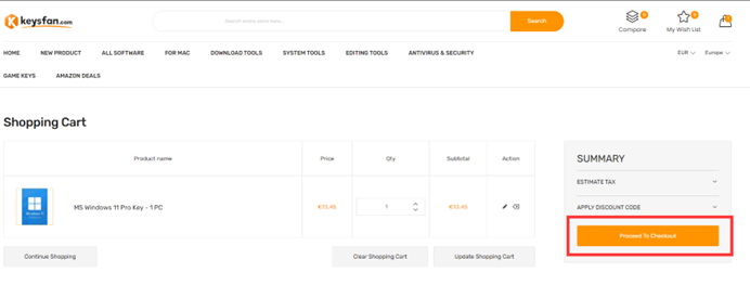 Añade el producto al carrito de la compra, haz clic en “Proceed To Checkout” tras la confirmación.