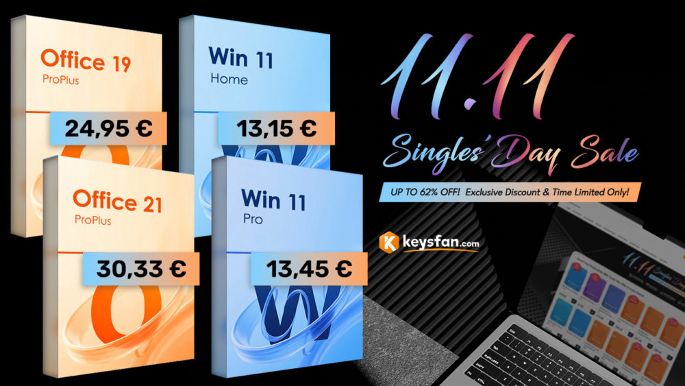 El Festival de Compras del Día del Soltero de Keysfan te da la oportunidad de completar tu actualización a licencias de software popular para PC por una fracción del precio oficial. ¡Y además, hay enormes descuentos disponibles para cientos de claves digitales! ¡Puedes ahorrar una fortuna siempre que realices una compra!