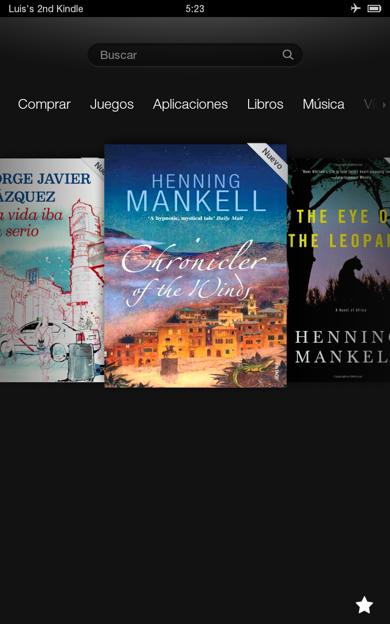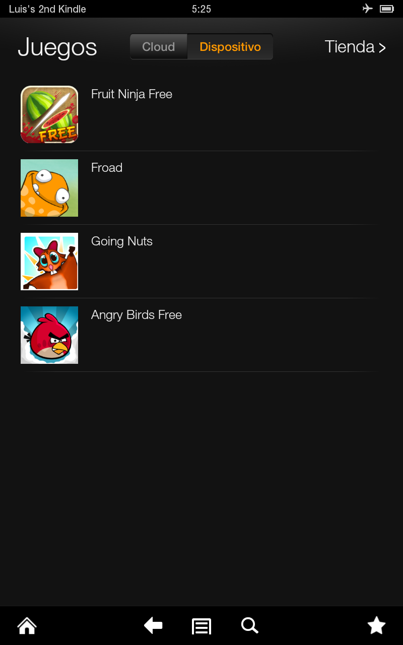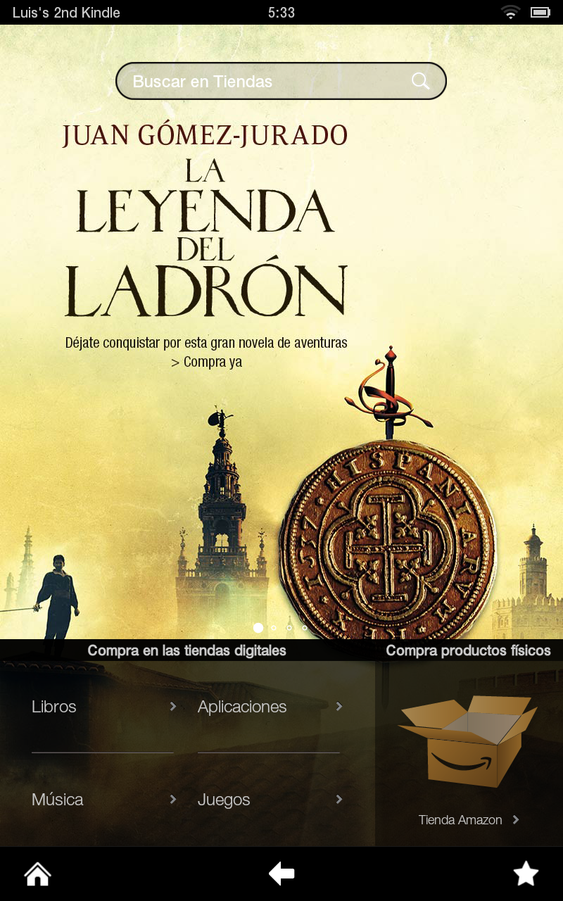 Dado que el Kindle Fire HD no dispone de botones físicos, todas las pantallas muestran en la barra inferior varios botones virtuales, siendo los más habituales: Casa, Atrás, Opciones, Buscar y Favoritos. Un detalle que no acabamos de entender es por qué el icono de «Casa» está a la izquierda del todo y el de «Atrás» (â†) está en el centro… parece ir a contracorriente del resto de tablets y teléfonos Android, así como de la lógica básica.