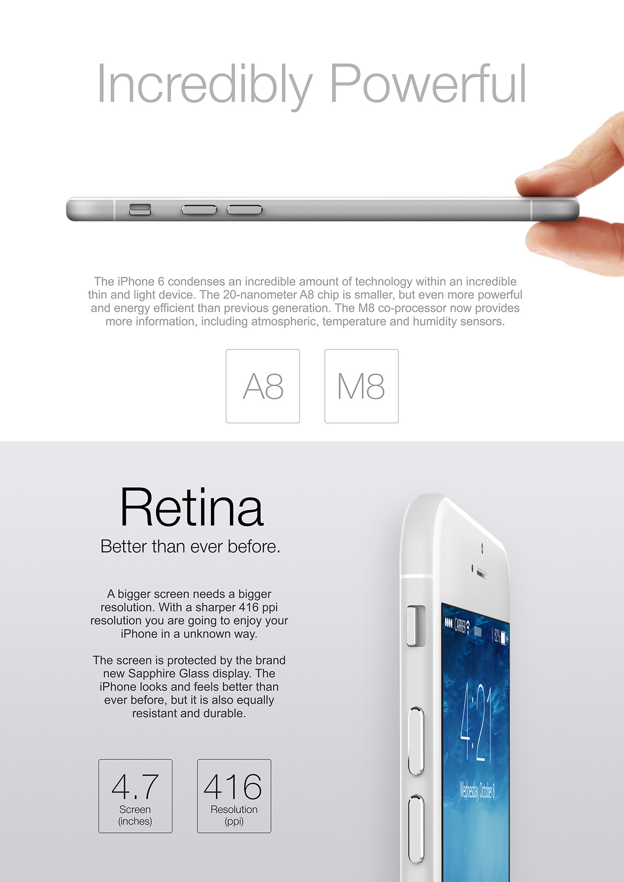 Estas imágenes están basadas en las filtraciones y rumores que se han publicado del iPhone 6 hasta la fecha.