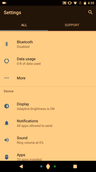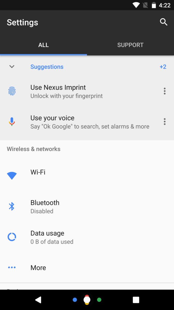 Google modificará el aspecto de la página de ajustes de los Nexus de 2016 para dar cabida a la nueva herramienta de Google Support, ofrecer una nueva forma de activar el modo Ambient Display con un doble toque, y un nuevo modo de «Luz Nocturna» para que la pantalla ofrezca un tono cálido.