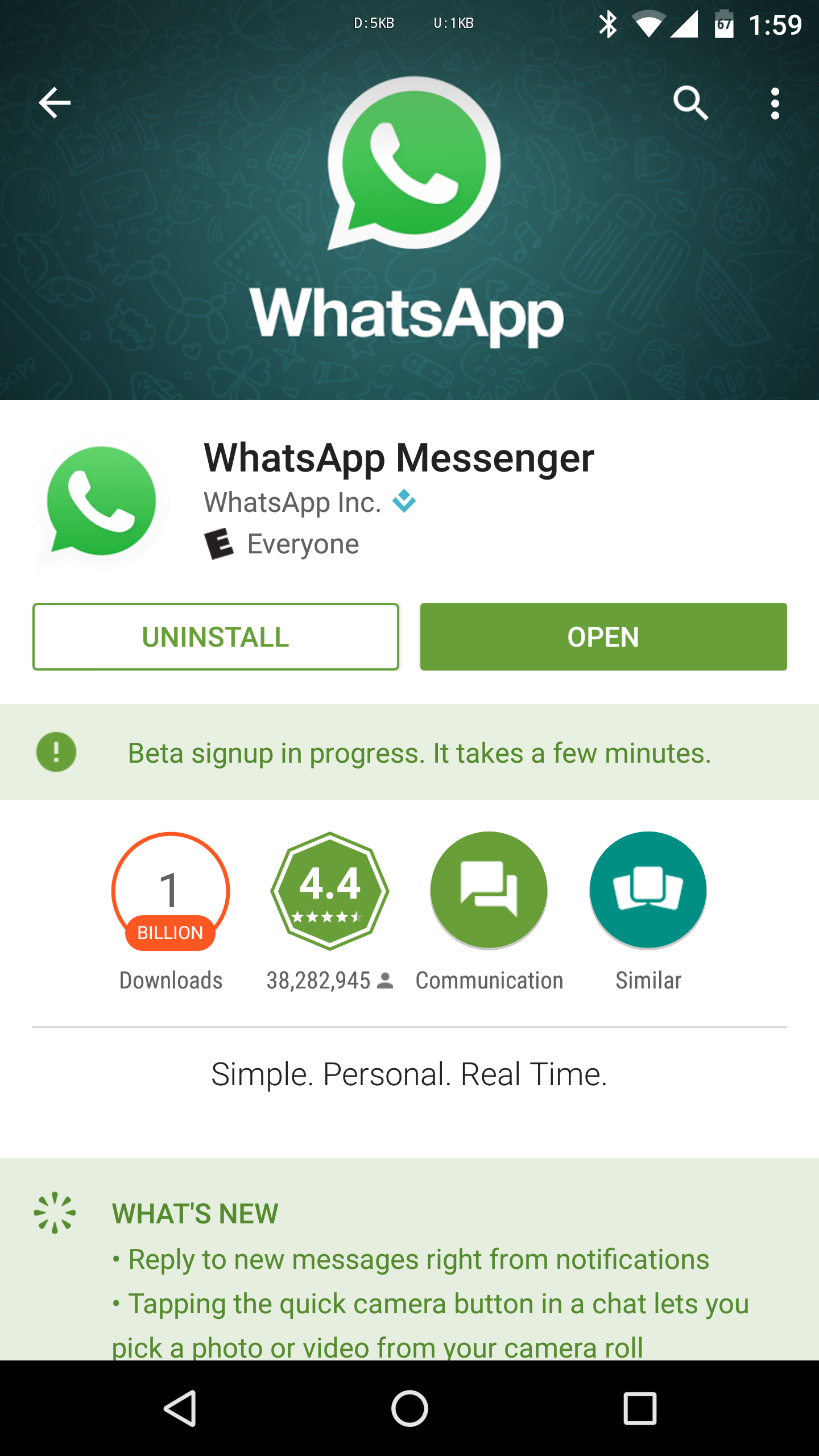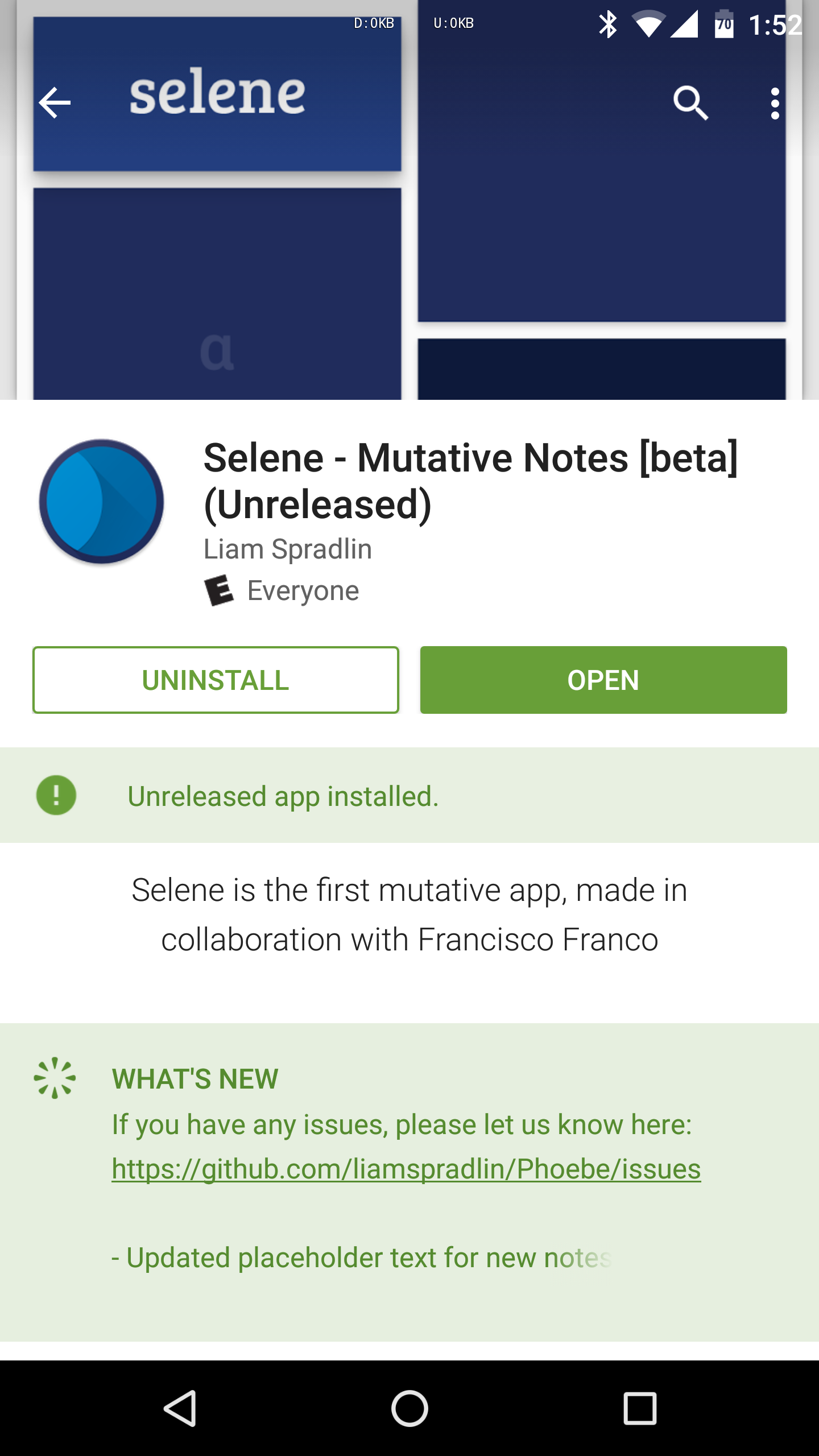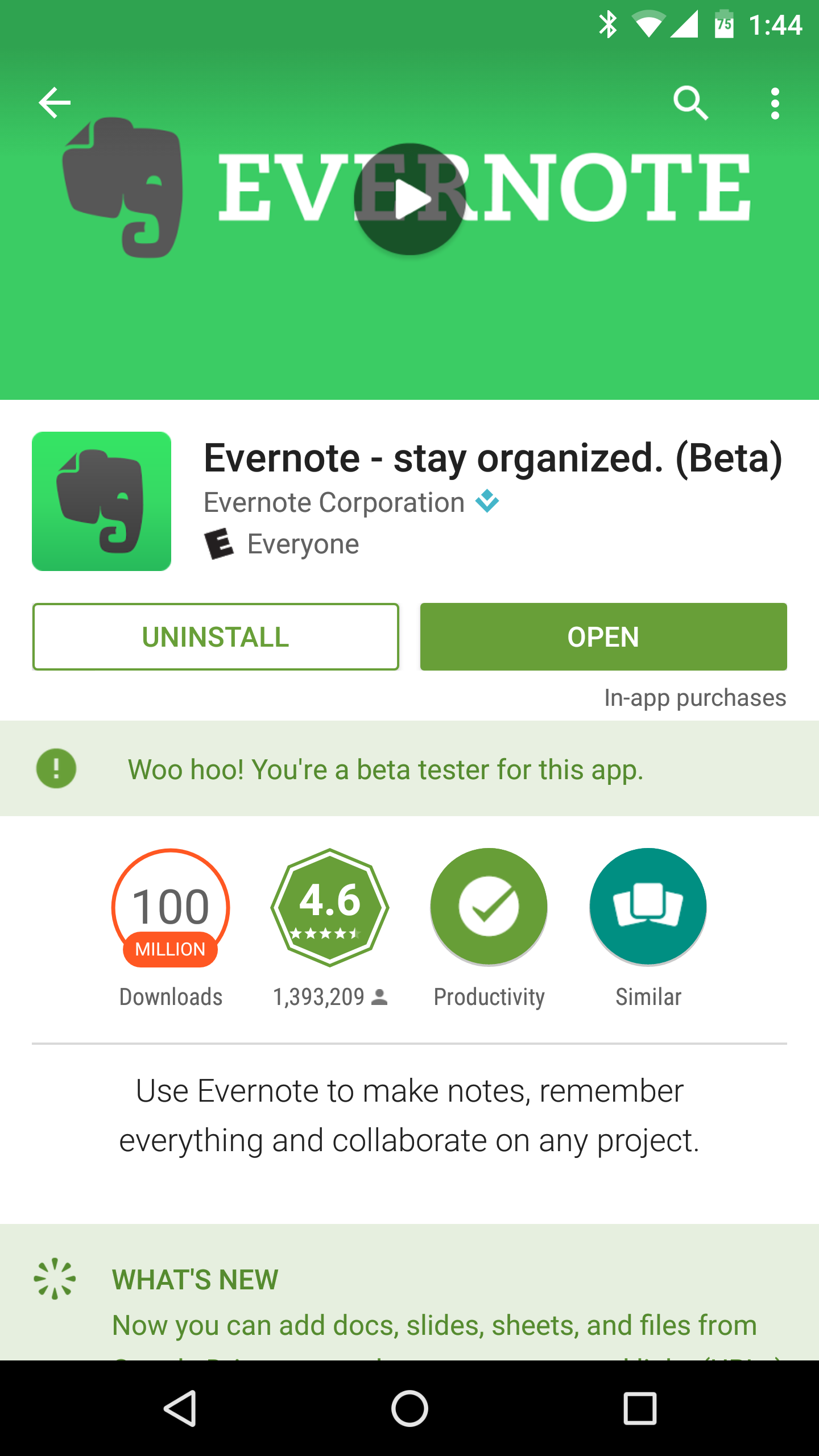 Cuando estás ejecutando una versión beta, Play Store te lo indicará en la parte de arriba de la página de la aplicación. Esto te vendrá bien en caso de que algo no funcione bien y quieras saber si estás ejecutando una versión que no es estable.