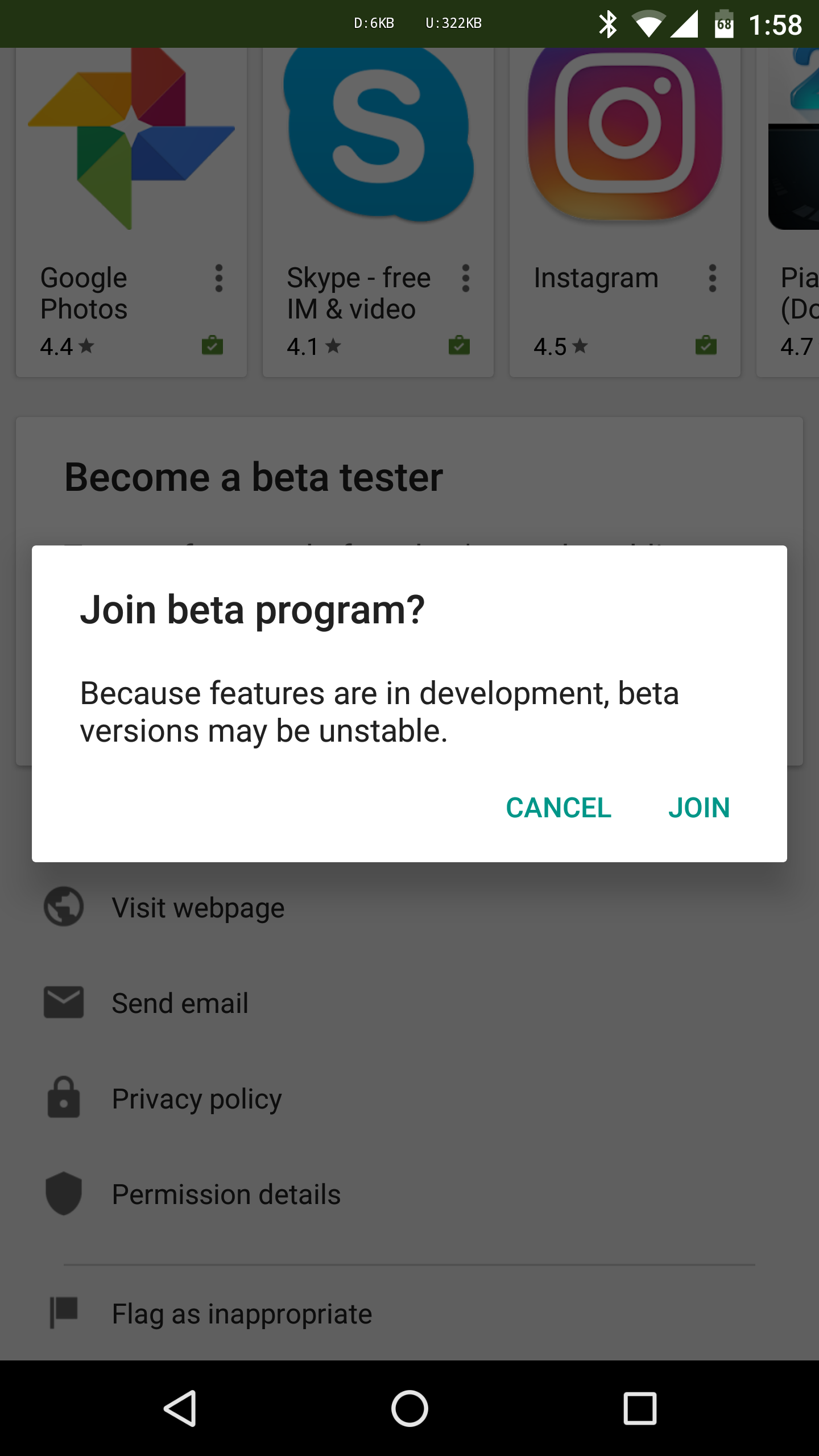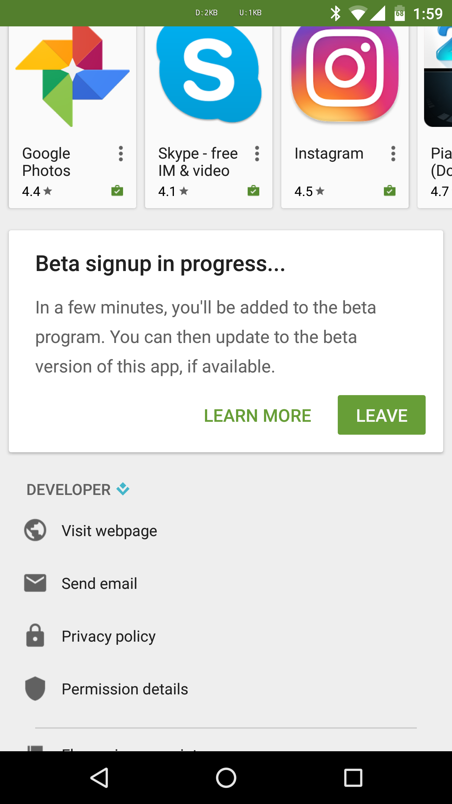 Con la nueva versión, puedes ver cuándo te has suscrito a la versión beta, puedes unirte o salirte de ellas, e incluso contactar con el desarrollador para dejarle tu opinión desde Play Store.